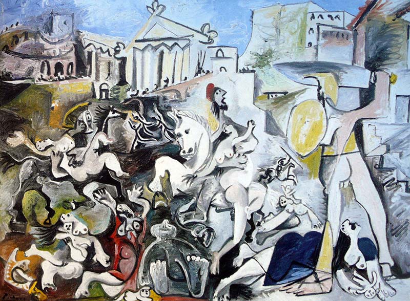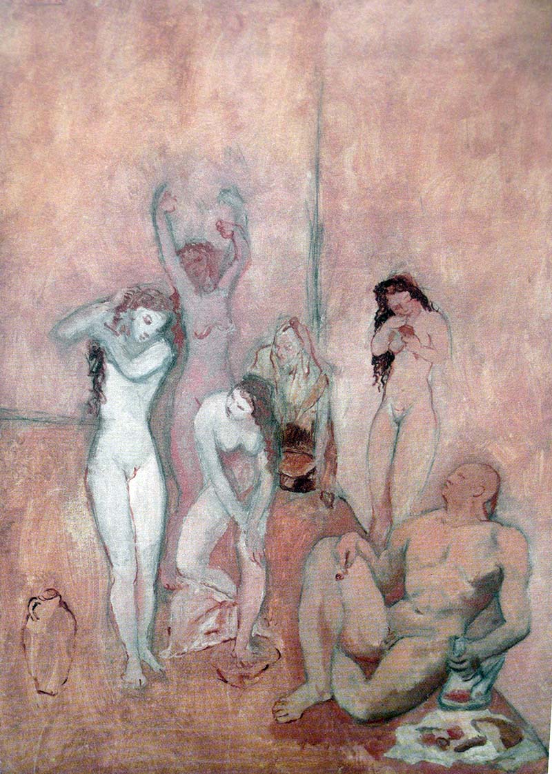 Una Arcàdia en la que hi té cabuda la primitiva innocència (feliç o desgraciada) i el plaer de viure. La pintura d’un món originari en què l’home recuperava els valors humans, els hàbits arcaics, que Picasso mitifica o -potser més ben dit- els somia (7) (Fig.14). Quelcom semblant al que anteriorment havien fet els grans mestres i que ara Picasso, com si jugués a barallar-s’hi, s’atreveix a reinterpretar. (Fig.15 ).