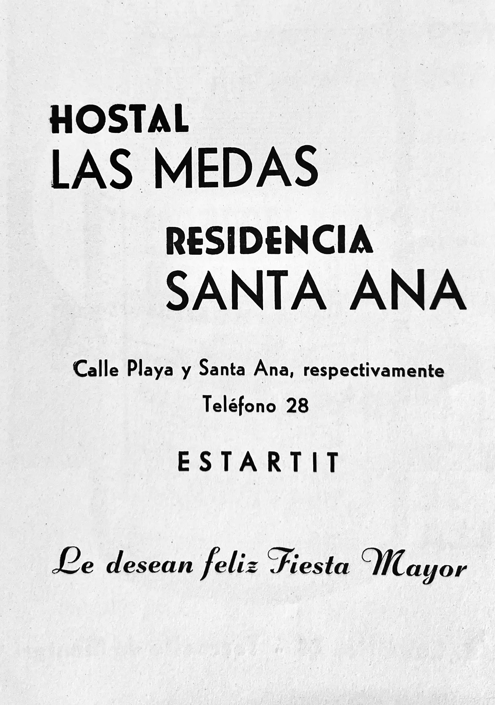 Joan Dalmàs s’adonava que el turisme era un bon negoci i que aniria a més en el futur. La seva filla li havia fet obrir els ulls. Per això, en paral·lel a la transformació de la casa familiar i la posada en marxa de la Residència Santa Anna, va buscar-se un soci per construir un altre hostal en una part del terreny que donava al carrer de la Platja. El millor soci que podia tenir era el seu bon amic Josep Coll Romaguera, masover del Mas d’en Pi, veí de la granja de porcs i gallines que en Juanito tenia a la plana, i a ell li va explicar la idea i la proposta d’invertir-hi plegats. Malauradament, en Coll no tenia bona salut i no s’hi va veure amb cor, va preferir no embarcar-s’hi. De fet, al cap de poc temps, va morir, amb només 40 anys. No podent comptar amb ell com a soci, ho va proposar llavors a Josep Ferrer Tibau, pagès de cal Moliner de Fontclara. Anirien a mitges: l’un hi posaria els diners i l’altre, el terreny. Al cap de cinc anys, segons narra Narcís Coll Frigola a les seves memòries, farien una subhasta tancada entre tots dos i se’l quedaria el que més n’oferís. D’aquesta manera, l’any 1962 va néixer la Pensión Las Medas al carrer de la Platja, número 22, que, inicialment, quan van obrir, només tenia nou habitacions. L’any següent, però, ja en tenia el doble. De fet, el 17 de març del 1964, la corporació municipal va aprovar la llicència d’obres sol·licitada per Narcís Coll per ampliar-ne el primer i el segon pis. Va ser un encert, perquè en pocs anys, van passar a hostal i després a hotel.