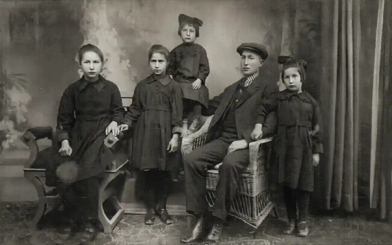 Estava casat amb Teresa Pujadas Dalmau, originària de Vilarnadal (Masarac), amb la que va tenir quatre filles: Maria, Consol, Caterina i Joaquima (Figura 4). L’any 1920 va quedar vidu, quan la seva esposa va morir d’apendicitis a l’edat de 37 anys. Aquest va suposar un cop molt dur per a la família. La filla gran, Maria, tot just amb deu anys, es va veure obligada a assumir les feines de la casa i a tenir cura de les seves germanes més petites. Va ésser un canvi brusc i prematur en la seva infantesa, que marcaria profundament el seu caràcter i la seva vida.