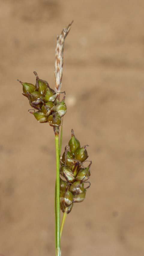 Carex liparocarpos (n) es troba molt localitzat en una llacuna seca (mapa 14), concretament a la part superior del puig. Aquesta és una espècie no citada a l’Empordà, segons el Banc de Dades de Biodiversitat de Catalunya (consultat el 29 de maig de 2018), encara que sí que s’havia detectat a prop de Salt (Gironès). Creix amb el trèvol pelut (Trifolium tomentosum) (rrr), que també es trobà en un erm prop de la Torre Ponsa, a l’altiplà del Montgrí. Floreix de mitjan abril a principi de maig. L’ungla del dimoni (Rhagadiolus stellatus) (rrr) creix a l’ombra d’unes roques del puig i a les llacunes properes (floració de final d’abril a principi de maig). Aquestes llacunes van ser aprofundides per a la reintroducció de la tortuga d’estany (Emys orbicularis), gràcies al projecte Life Emyster (2005-2008). En aquesta zona s’hi van trobar una desena de boneters (Evonymus europaeus) (n) formant una tanca, i segurament, van ser plantats durant els treballs de restauració de l’ecosistema. El mill de sol (Lithospermum officinale) (n), amb els seus curiosos i durs fruits de color blanc d’ivori, compta en aquesta zona amb una població de més de 60 plantes (floració de final d’abril a principi de maig).