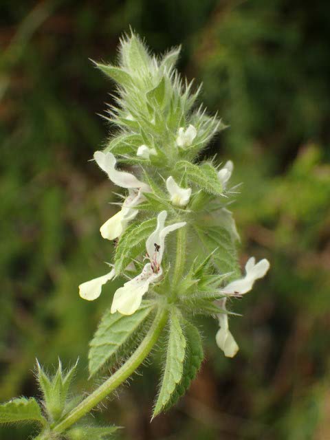 Un petit pujol, al sud-est del mas Pinell de Dalt (6), acull una població molt maca d’alfàbega borda (n) de més de cent plantes. També se’n va trobar un grupet amb tres peus en un talús del camí Vell (itinerari 2), a l’oest del mas de la Torre Quintaneta, en el marge d’un camp tractat regularment amb herbicides. La floració té lloc de maig a mitjan juny. En aquesta zona també es va trobar un peu florit de l’heliantem ledifoli (Helianthemum ledifolium) (rrr), el 5 de maig de 2018. Aquesta rara cistàcia té el seu màxim exponent al puig de la Fonollera.