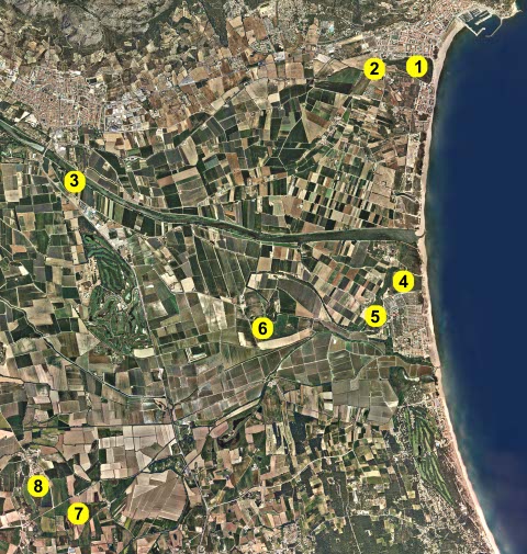 Introducció: La recerca de la poc estudiada població de papallones del Parc Natural del Montgrí, les Illes Medes i el Baix Ter (PNMMBT) ha portat Tristan Lafranchis, un naturalista expert i autodidacte, a recórrer cada metre del parc una vegada i una altra, entre el 2014 i el 2019. Durant l’any 2018, diversos llocs d’interès van ser visitats conjuntament amb membres del Grup Local del Baix Ter de Flora Catalana. Aprofitant aquestes sortides, s’han anat trobant espècies de plantes que es recullen en aquest article, especialment interessants per diferents motius. Les consideracions sobre les espècies detectades o no amb anterioritat, es fan en referència a l’estudi monogràfic sobre el poblament vegetal i els hàbitats del Montgrí, les Illes Medes i la plana del Baix Ter, volum coordinat per Lluís Vilar, Xavier Quintana i la Càtedra d’Ecosistemes Litorals Mediterranis, que va ser publicat l’any 2014 [1]. Les plantes més interessants s’acompanyen en el text d’una lletra entre parèntesis indicant si no havien estat detectades amb anterioritat (n), si havien estat detectades abans del 1960 però no inventariades recentment [1] i s’han retrobat en aquestes sortides (re) o bé si són plantes molt rares, és a dir, escasses a la zona d’estudi (rrr) [1]. Per tal de fer més amena la lectura, les plantes es presenten distribuïdes en cinc itineraris ordenats geogràficament de nord a sud. En aquesta darrera entrega us presentem el cinquè itinerari.